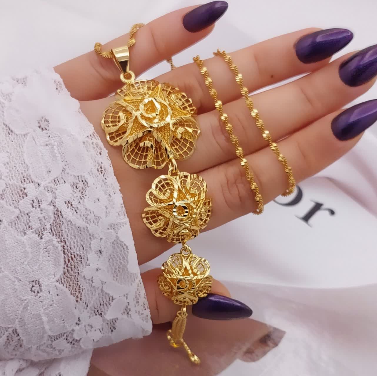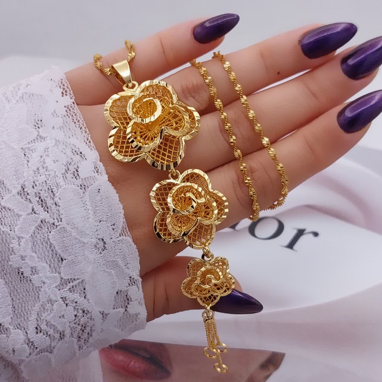 #گردنبند زنانه طرح گُل جدید ♦️رنگ ثابت♦️بدون حساسیت♦️آبکاری طلا♦️شیکوخاص ♦️ برندCityGold ♦️با زنجیر۶۰سانت ♦️در10مدل شیک🌹کد1031💍