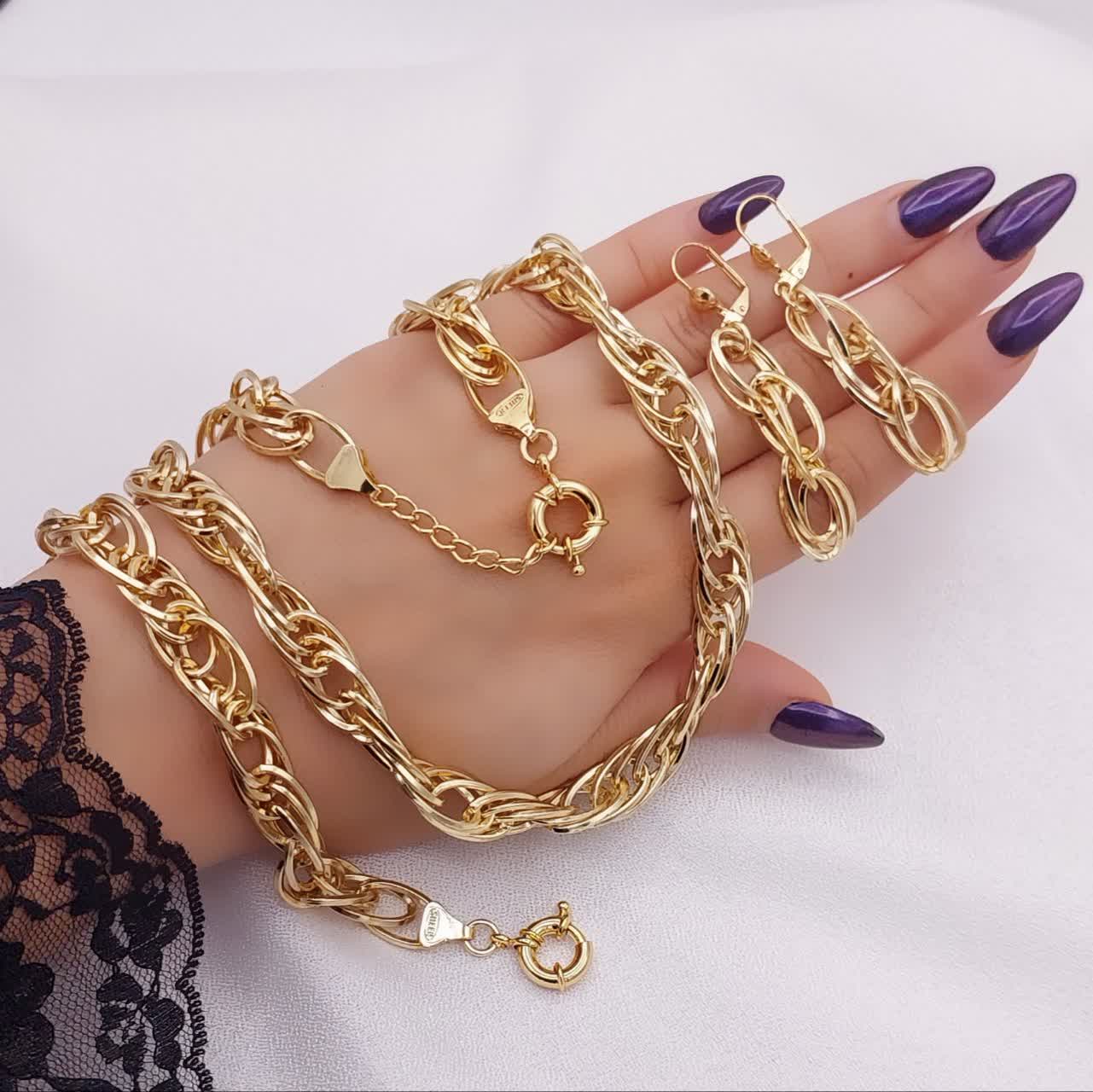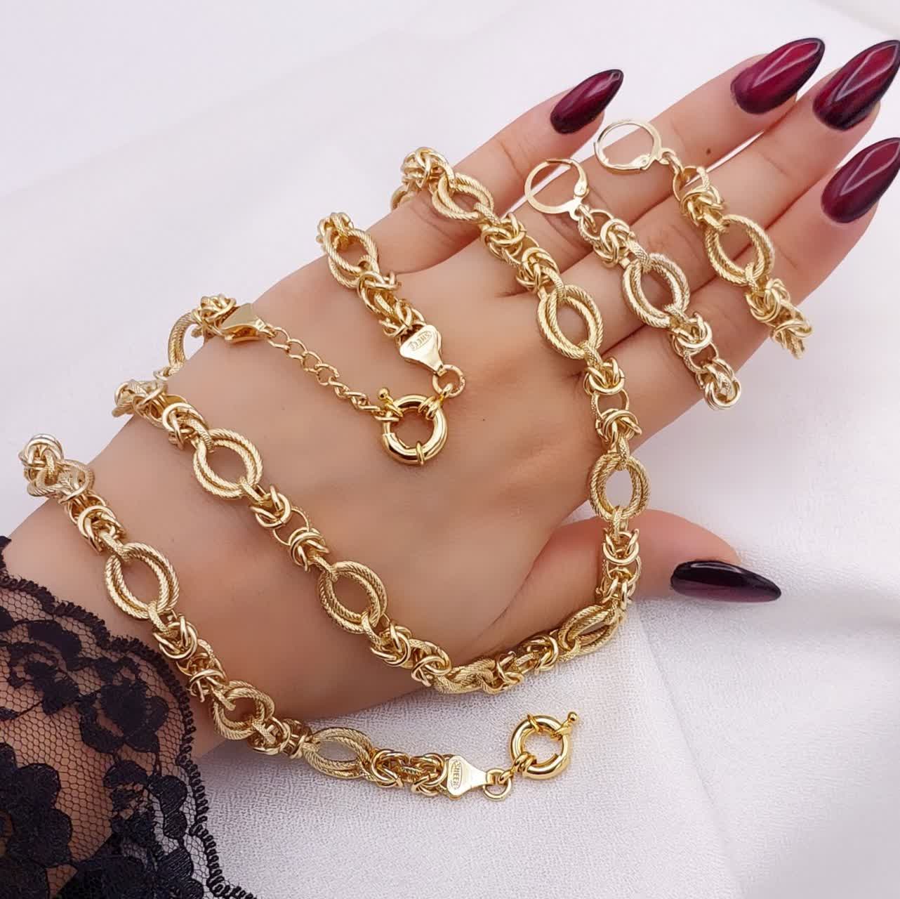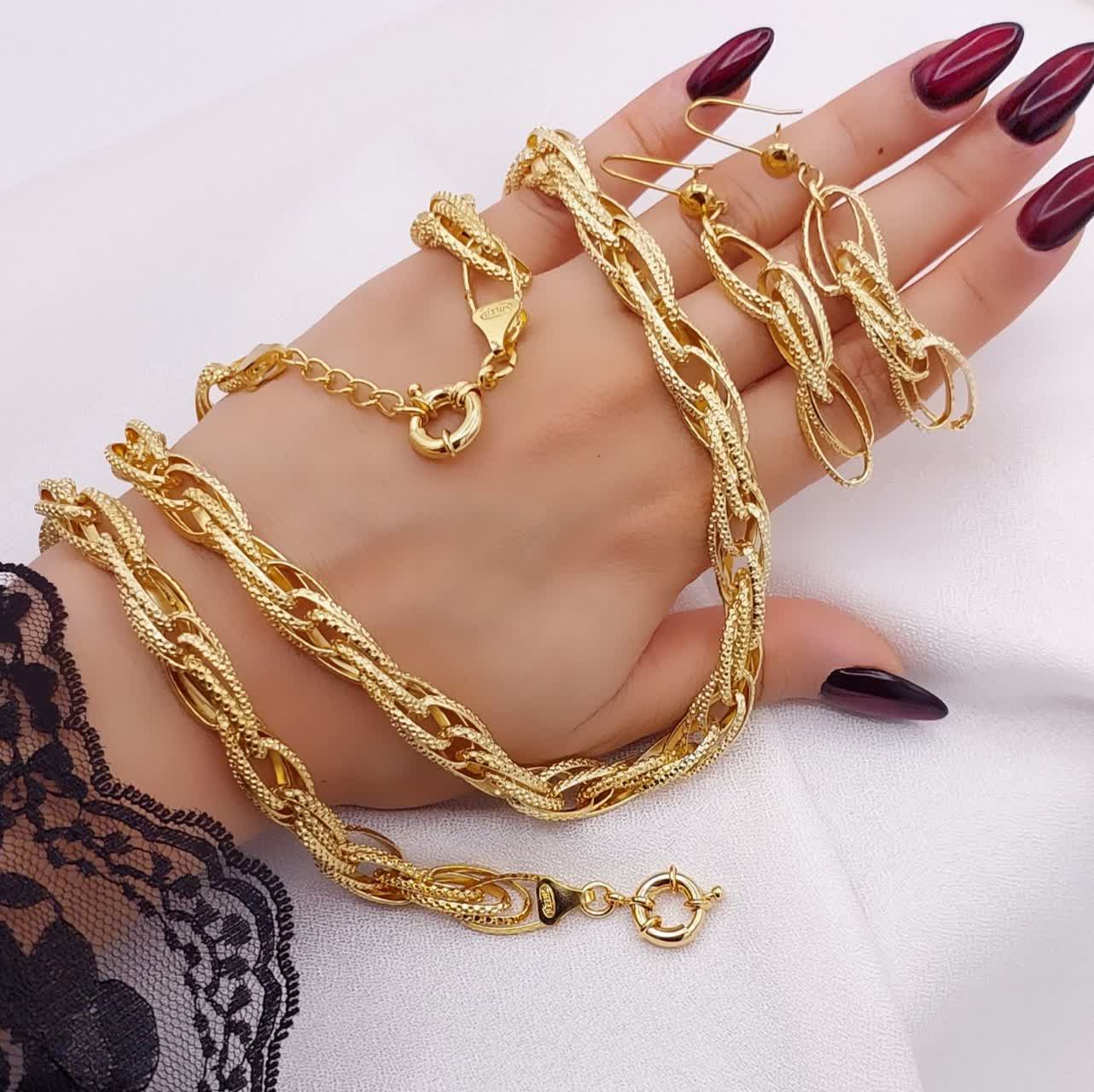 سرویس طرح طلای زنانه، مدل شنل، زنجیری، برند مطرح ژوپینگ، در 3 طرح شیک💎