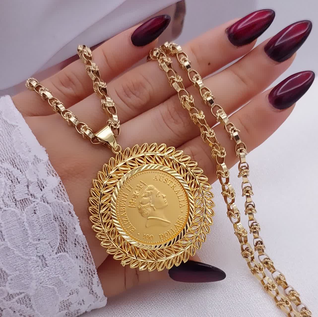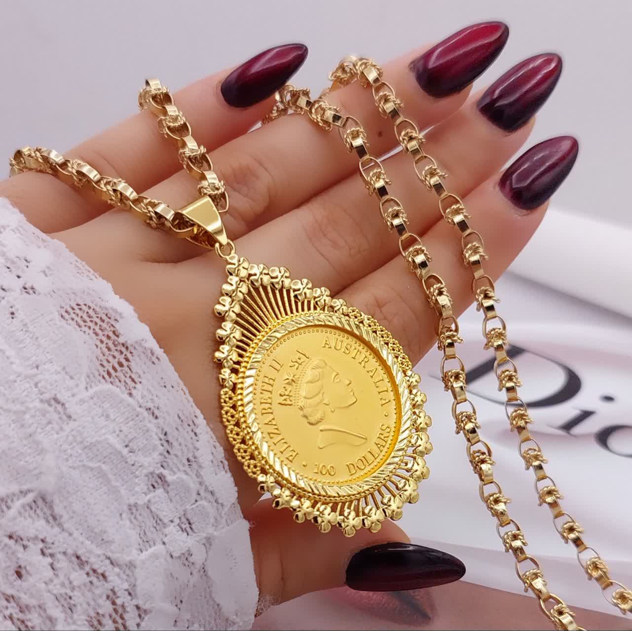 گردنبند زنانه بلند طرح طلا جدید May Dear | پلاک سکه‌ای کلاسیک| ۱۱۷۵