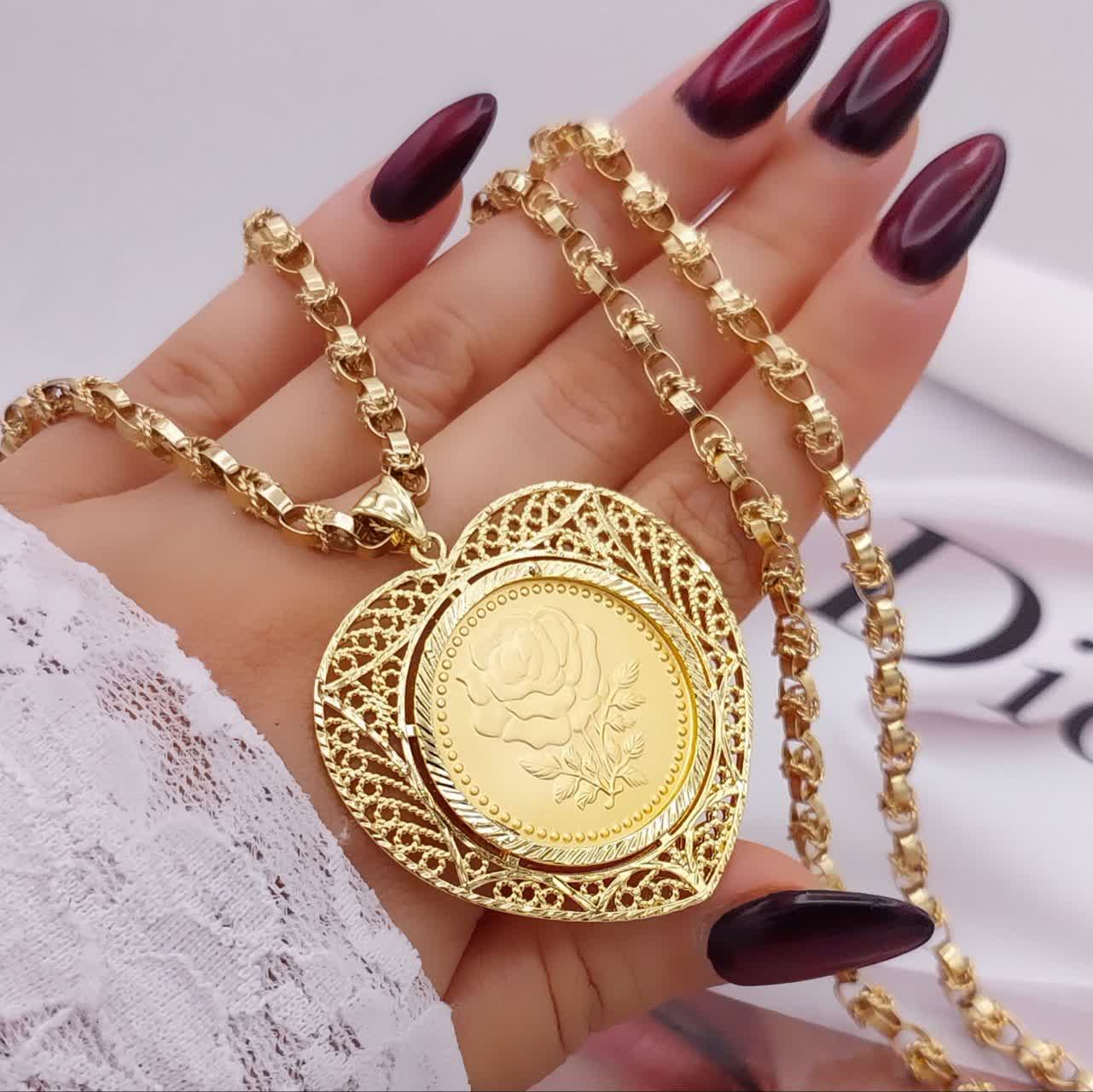 گردنبند زنانه بلند طرح طلا جدید May Dear | پلاک سکه‌ای قاب برگ‌دار| ۱۱۸۰