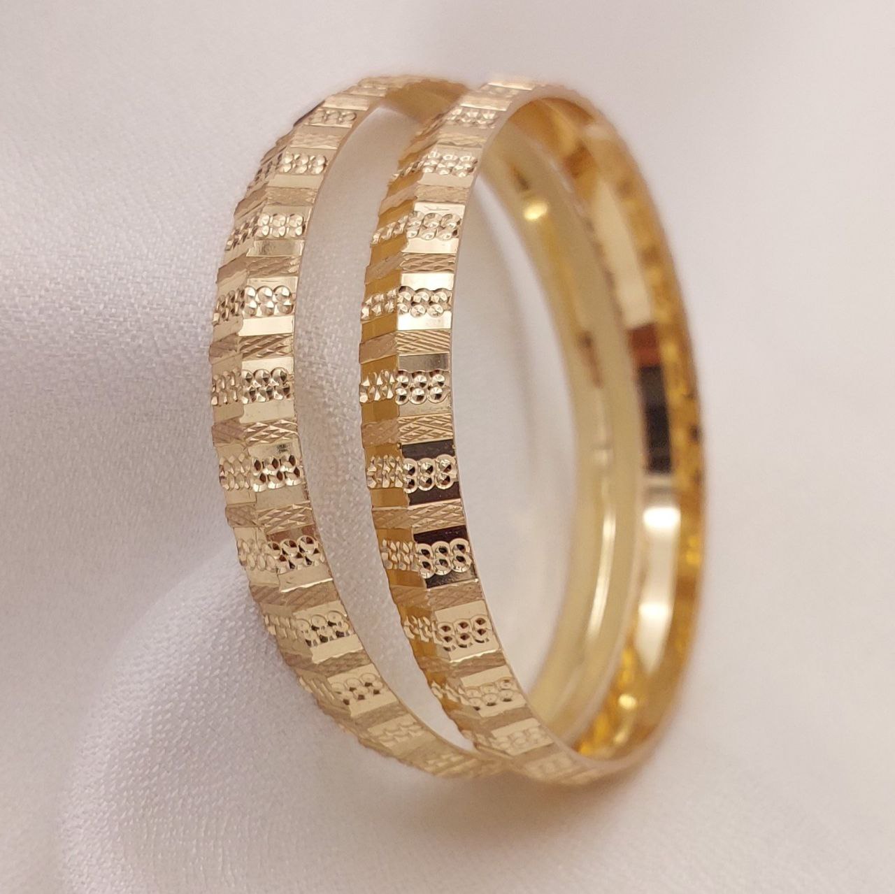 😍خرید النگو طلا روس 8 میل طرح تراش (پک 2 تایی) –♦️ رنگ ثابت تضمینی و ضد وایتکس | 👑خاصزیور کد 1092