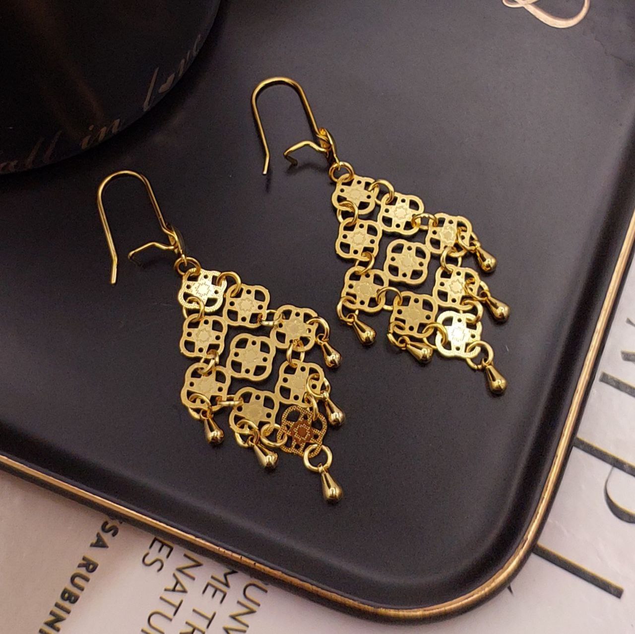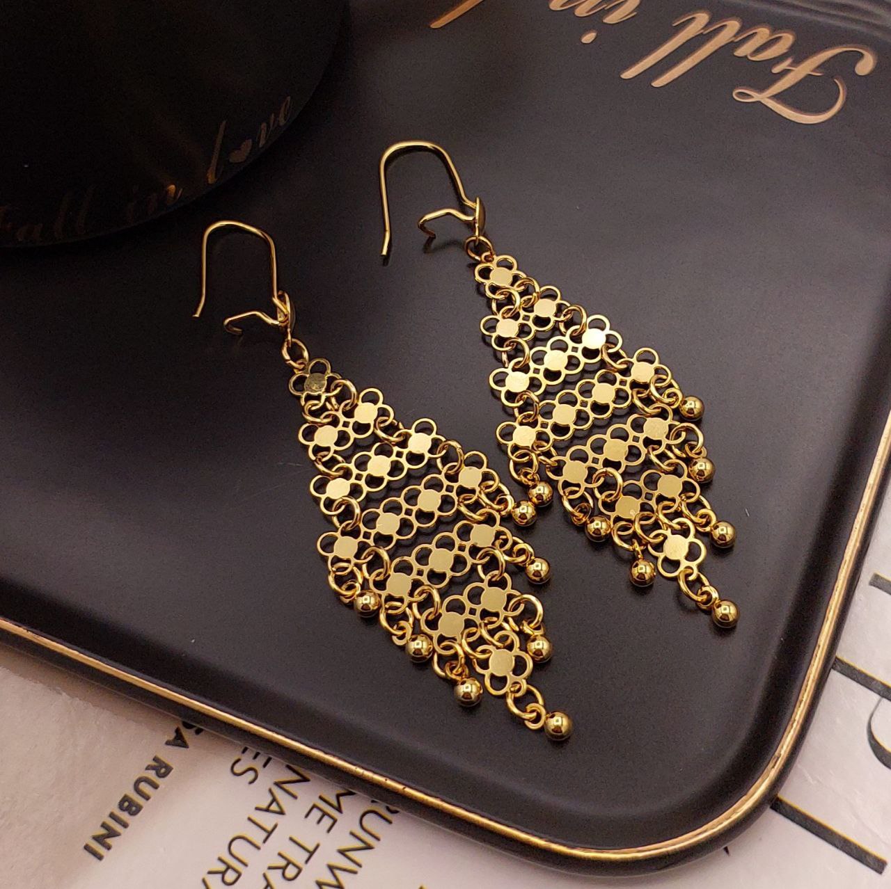 گوشواره آویز سیتی گلد طرح توری و اسلیمی (ملیله‌کاری)