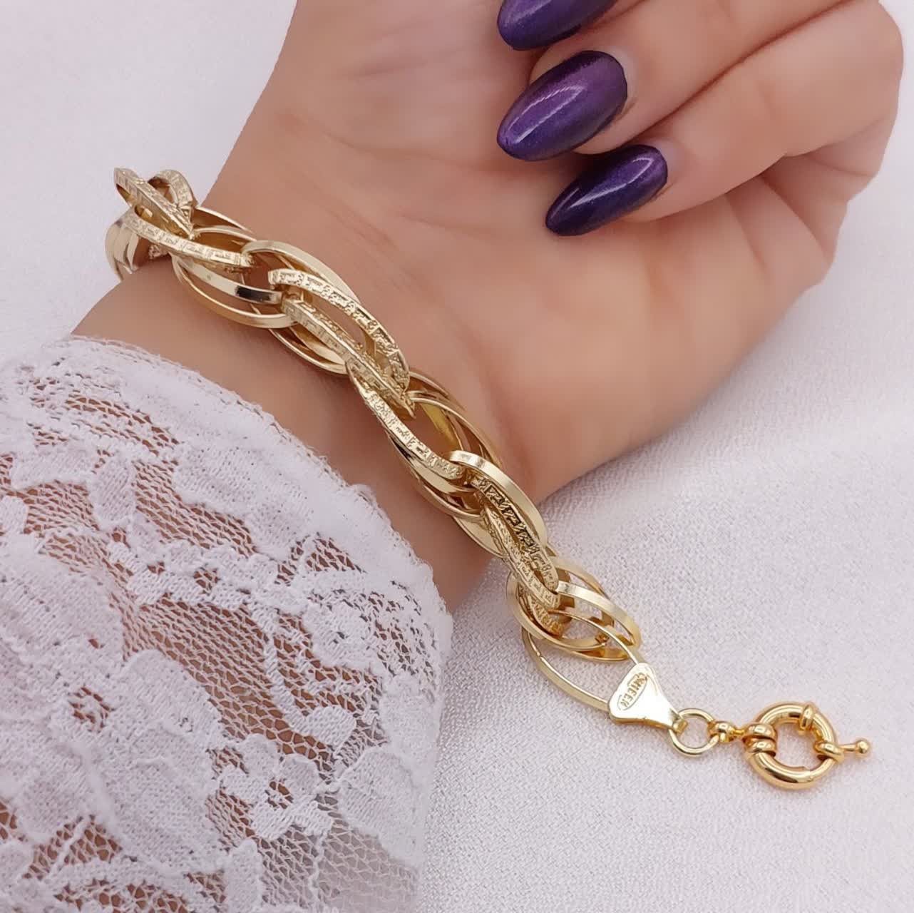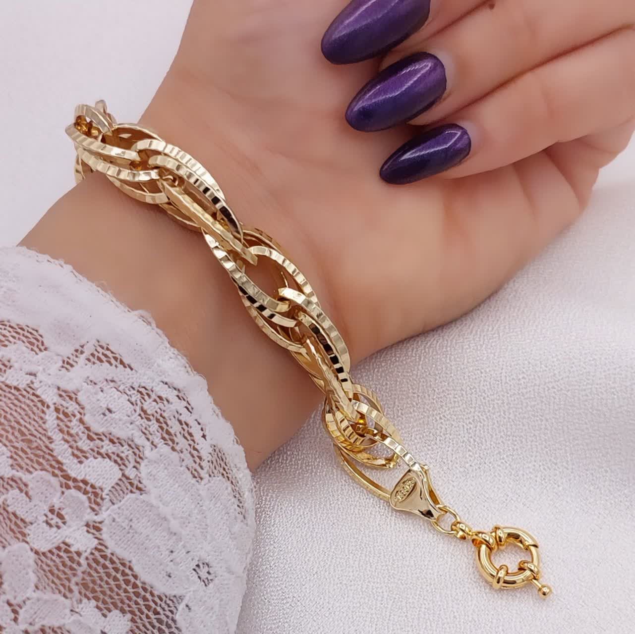این مدل از نظر طراحی، جزو دستبندهای حلقهای خاص و ترند محسوب میشود. تنوع فرم حلقهها باعث شده دستبند روی مچ جلوهای لوکس و منظم داشته باشد. قفل ملوانی عملکرد مطمئنی دارد و در کنار رنگ ثابت و ضمانت یکساله، حس اطمینان در خرید ایجاد میکند.