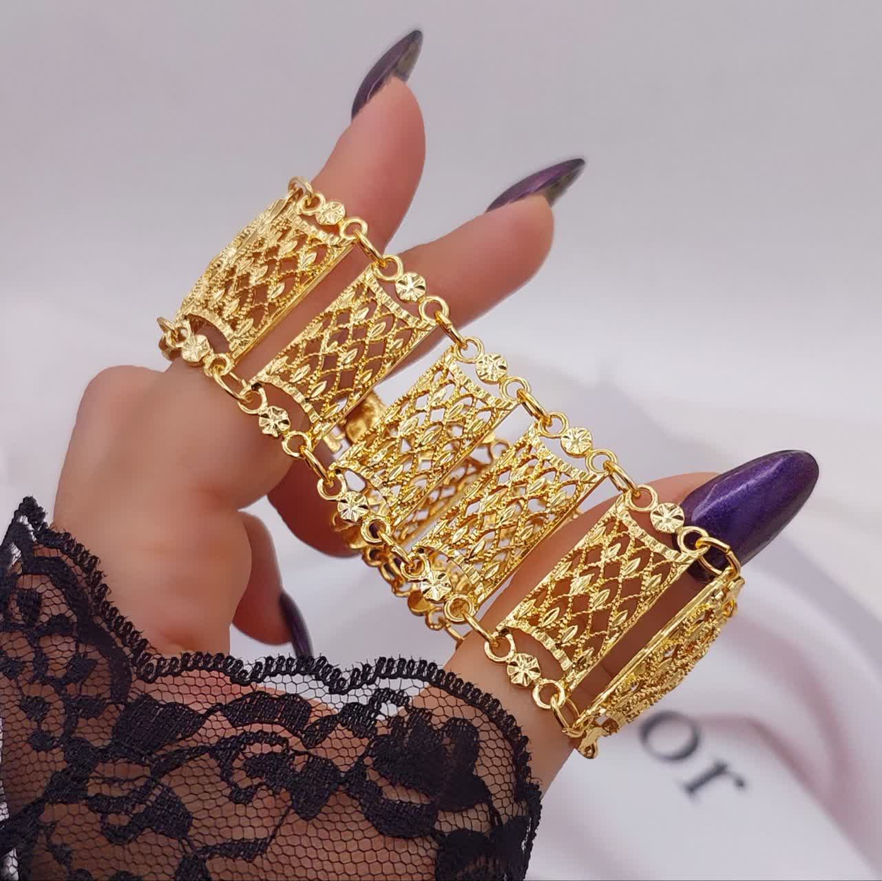 طراحی پهن و اتصالهای زنجیری باعث شده این مدل بدون نیاز به اکسسوری مکمل، جلوه کامل داشته باشد. کیفیت آبکاری و ثبات رنگ، آن را برای استفاده طولانیمدت کاملاً مناسب کرده است.
