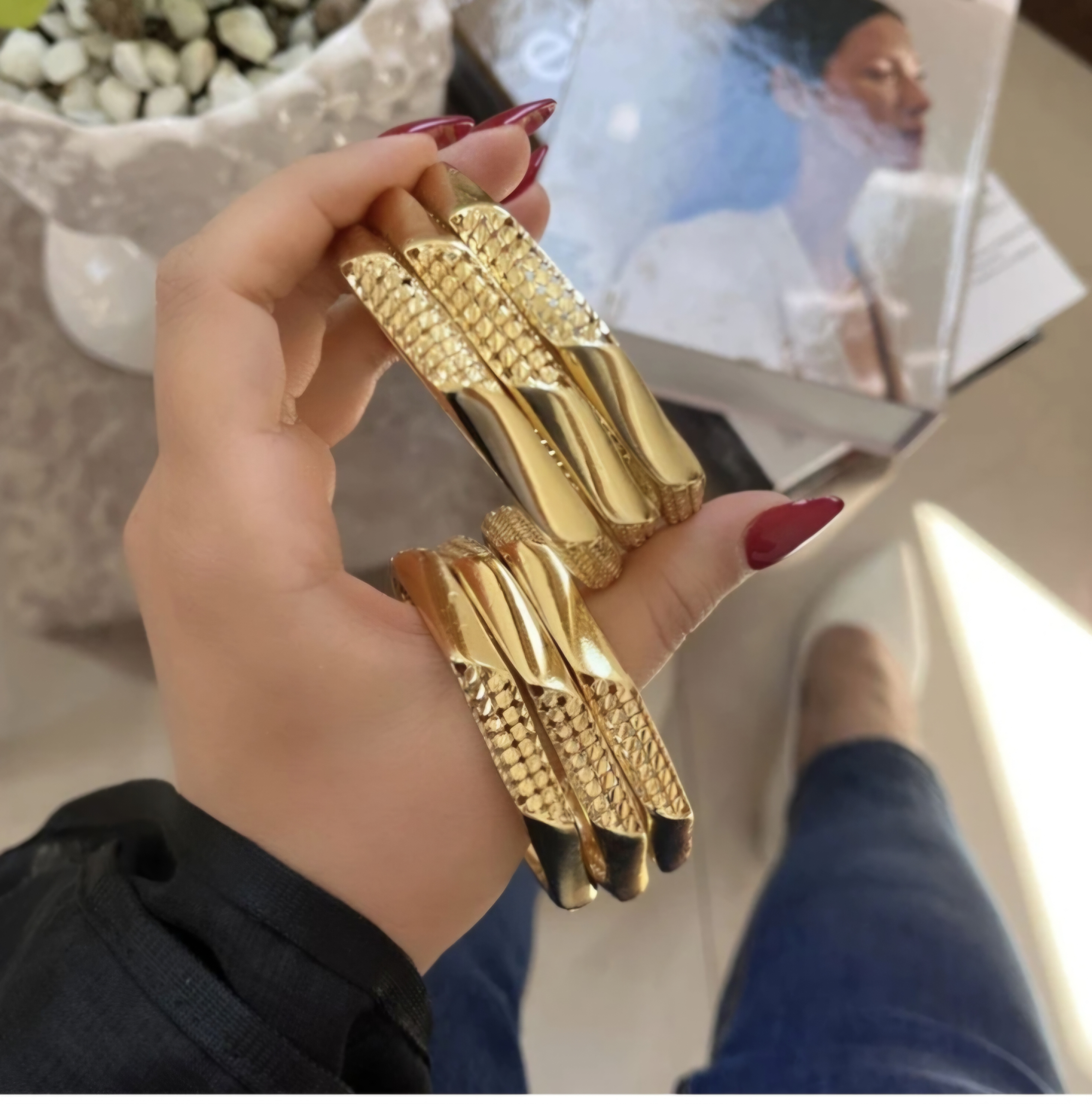 النگو طرح طلای زنانه،مدل هندی،پک ۶تایی مناسب استفاده دائم💎